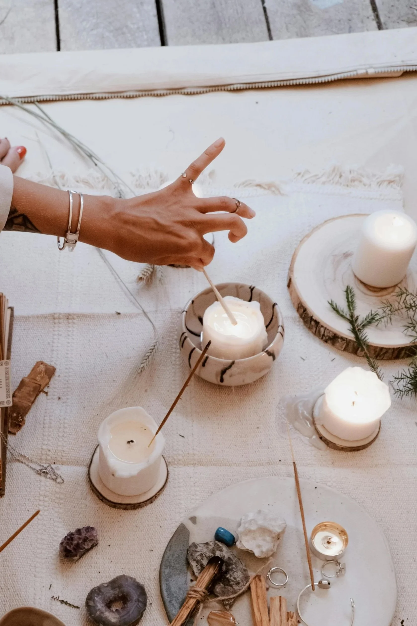 Tea. Breath. Conversation. Hape, Melipona, or other medicines if you choose. Story. Truth. Nervous system grounding. Everyone lands. Everyone is seen. We explore astrology, design, and the themes that brought you both here. Safety and resonance set the tone. Your system begins to exhale. The field begins to open.
